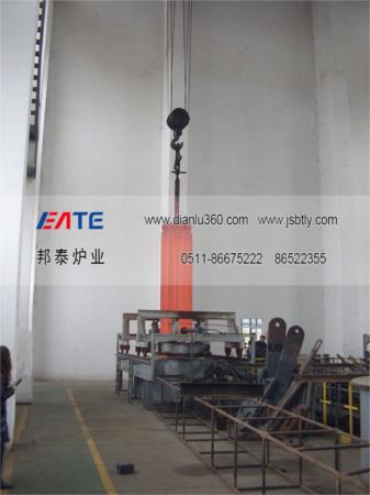 4、深井井式爐爐蓋啟閉采用行車起吊或自動液壓開閉機構,且帶有導向柱,保證爐蓋啟閉平穩;